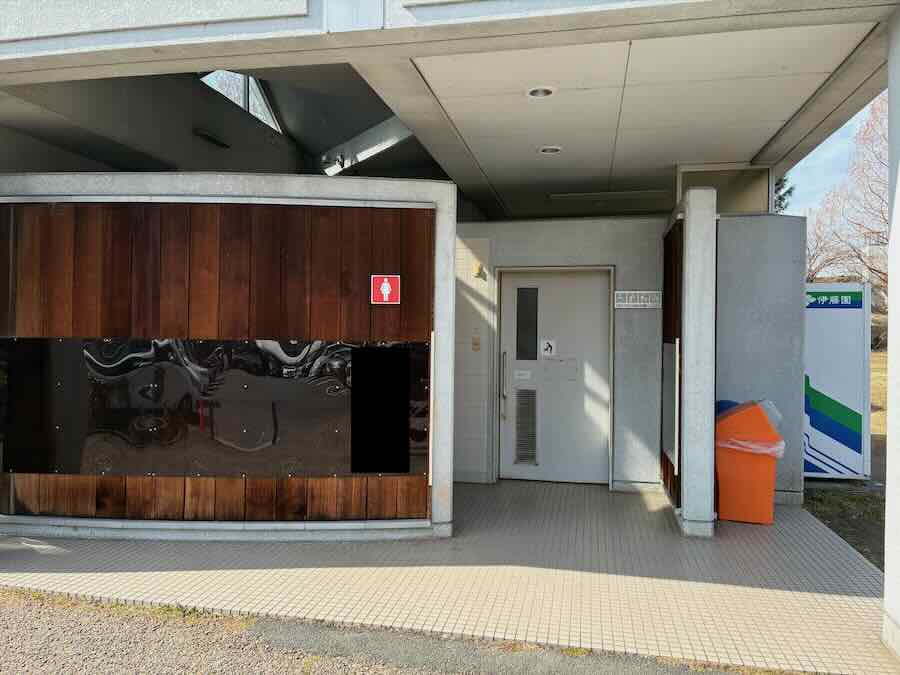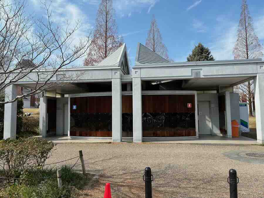 こちらの写真は、芝生エリアと遊具エリアの境目にあり、駐車場横にあるトイレです。