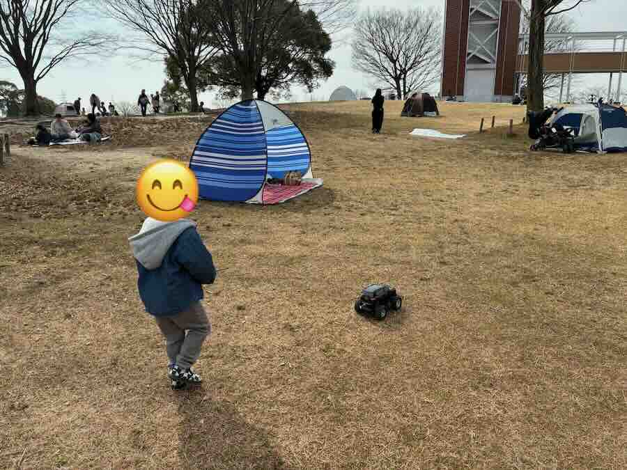 我が子はラジコンをしたり、ボール遊びをしたりして、楽しそうに走り回ってくれます。芝生エリアが広いのでのびのびと遊べますよ!